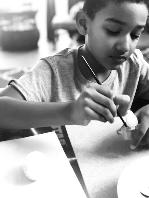 Easter Sunday we did some egg coloring with glitter paint which came out super cool. We also did some pastel painting on random canvases we had laying around. Get creative with what ever supplies you have on hand.